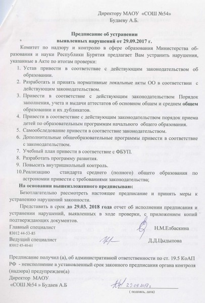 Предписания органов, осуществляющих государственный контроль (надзор) в сфере образования, отчеты об исполнении таких предписаний (при наличии)